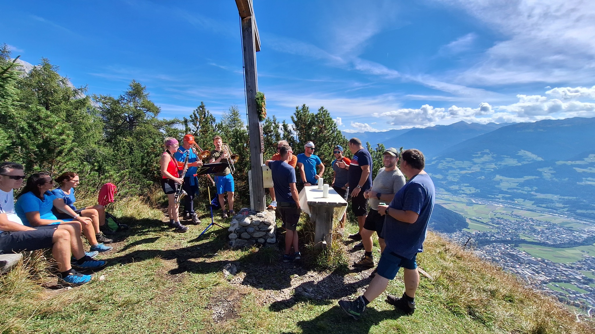 Bergmesse der Absamer Matschgerer am Hochmadkopf. Pfarrer Martin erreichte den Gipfel in 50 Minuten (begleitet vom Gemeindeamtsleiter).