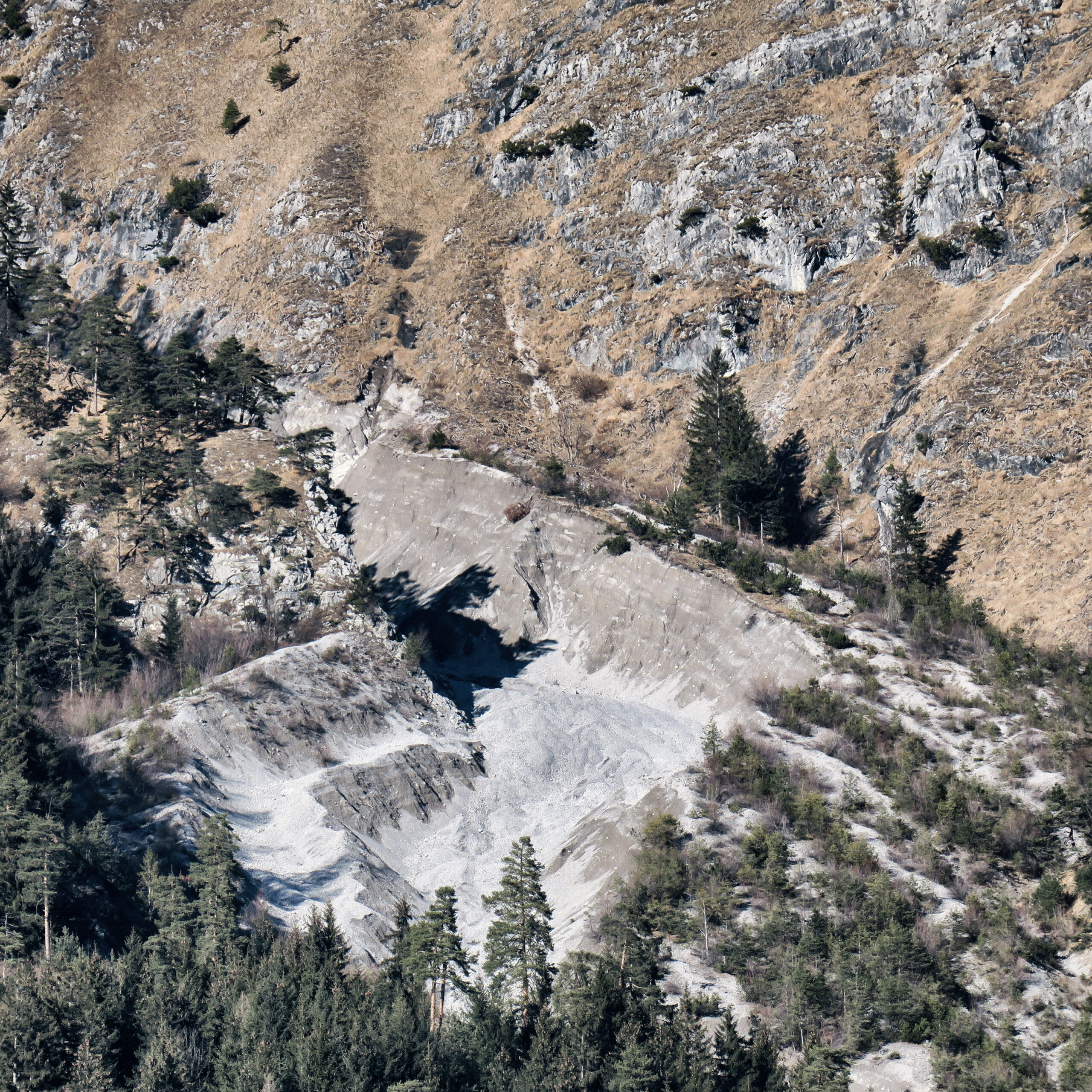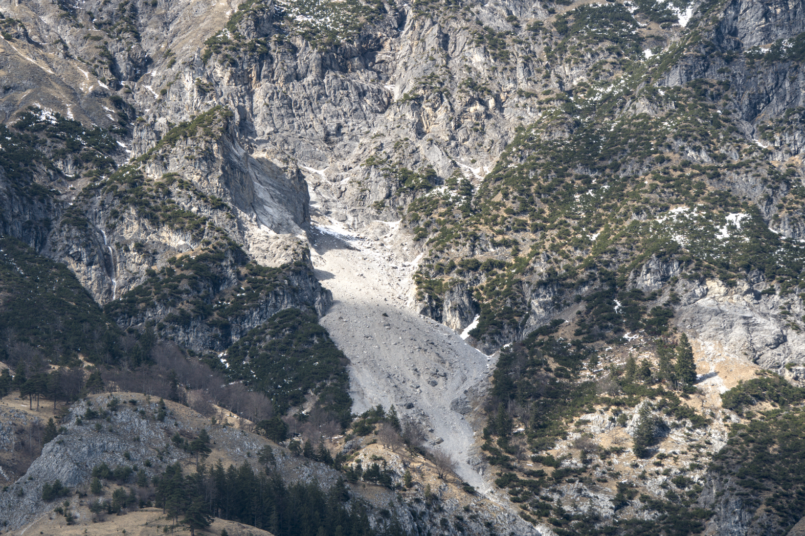 Die abgebrochenen Gesteinsmassen am 04.04.2026 (Bild: Thomas Pittl)